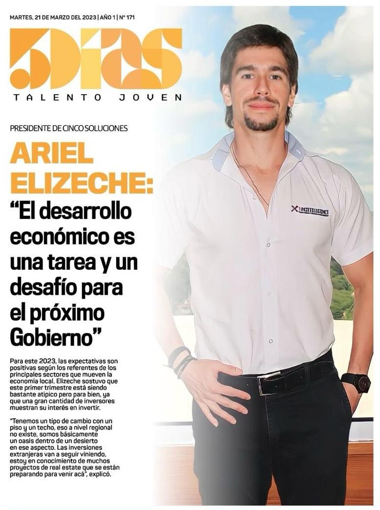 El Ing. Ariel Elizeche (MBA) es socio fundador de la firma Cinco Soluciones S.A. empresa destinada a la prestación de servicios corporativos y desarrollos inmobilarios a través de su marca Constructora / Desarrolladora 5S, desde el año 2018 en adelante. Socio / Director en RJR Import y en proyectos diversos.